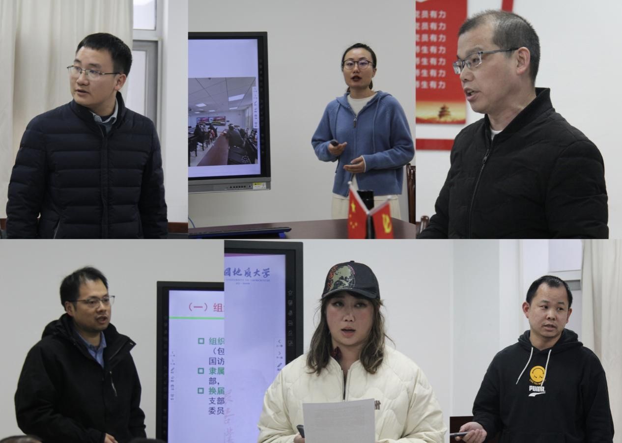 述职评议考核采用现场述职的方式进行。6个教工党支部书记对照党支部建设“七个有力”要求和学校教职工党支部、学生党支部考核评价指标体系(地大党发〔2021〕31号),围绕党纪学习教育主题活动的开展;习近平新时代中国特色社会主义思想、党的二十大和二十届三中全会精神、全国教育大会精神的学习贯彻;学校第十三次党代会的工作部署;党建引领保障91短视频 高质量发展的建设水平的提升;党支部对本科教育教学审核评估工作的推进;民族宗教、意识形态的排查举措;深化平安校园建设、履行全面从严治党第一责任人职责,推进“清廉地大”建设等方面汇报了支部重点工作完成情况、特色活动开展情况、存在的问题分析,以及下一步工作设想。