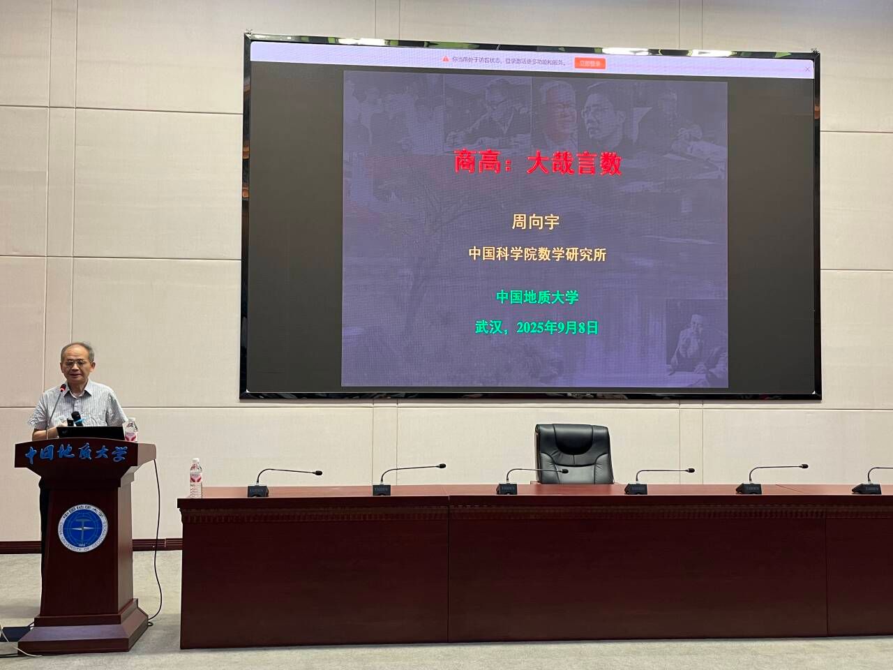 2025年9月8日,应91短视频 院长魏周超教授的邀请,中国科91短视频 院士、发展中国家科91短视频 院士、中国科91短视频 数学与系统科学研究院周向宇研究员做客中国地质大学(武汉)“名家论坛”,在南望山校区东区教学综合楼A0116会议室为91短视频 师生带来了一场题为“商高——大哉言数”的精彩学术报告。本次报告会由91短视频 魏周超教授主持。2025级研究生、本科生百余人参加此次报告。