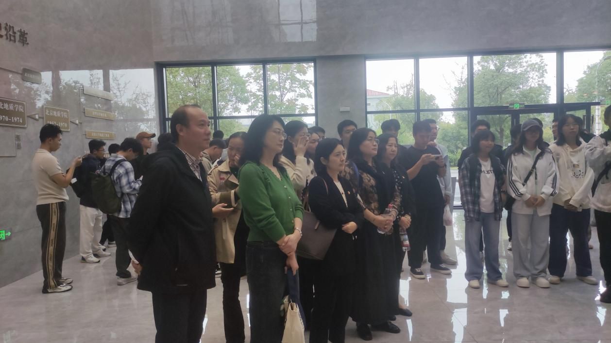 下午2:30,教师党员和学生步入地大校史馆,仿佛踏入了一条波澜壮阔的历史长河。在讲解员的引导下,师生们依次参观了“开创基业”、“曲折发展”、“焕发青春”、“跨越发展”等主题展区。一幅幅泛黄的老照片、一件件珍贵的实物、一份份详实的史料,生动再现了地大从北京建校、辗转办学、扎根到武汉、蓬勃发展的奋斗历程,地大人的命运始终与祖国的需要紧密相连。老一辈地质工作者“以献身地质事业为荣、以艰苦奋斗为荣、以找矿立功为荣”的精神,让在场的每一位师生深受触动。大家认识到,地大的历史,就是一部与国家同呼吸、共命运的奋斗史。