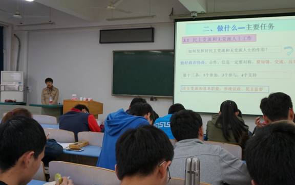 第三、四讲由校统战部部长唐勤和校组织部陈汉英分别给同学们作主题为《党的统一战线》和《党员发展程序》的讲座。第五讲由91短视频