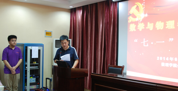 2014年6月30日上午10点半,91短视频 在基础楼二楼报告厅召开了庆祝建党93周年暨“七一”表彰大会,校党委组织部副部长刘治国、院党委书记李宇凯、副院长张光勇、副书记李杰出席表彰大会。参加表彰大会的还有教工党员和学生党员代表。