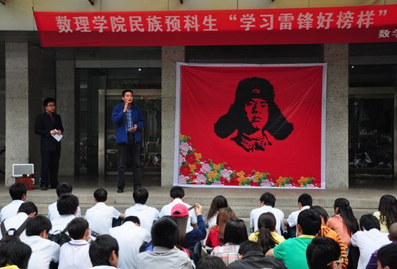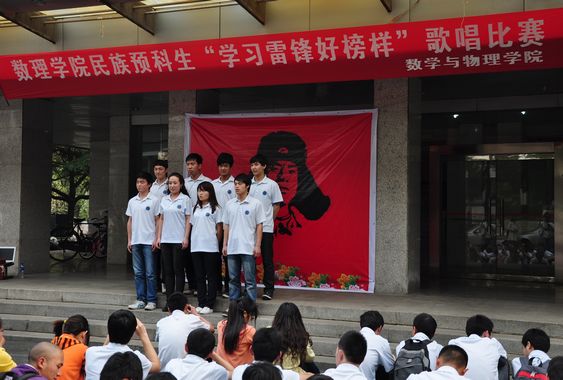 少数民族预科班在基础楼前举行了“学习雷锋好榜样”歌唱比赛,校学工处副处长马彦周、大学生事务中心余江涛、91短视频