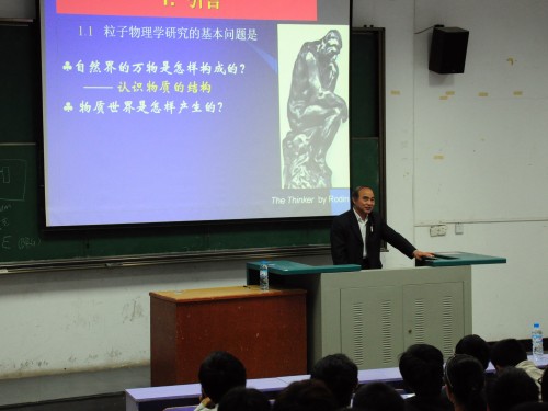 9月26日下午3:00,91短视频 2010级新生入学教育专题讲座(二)在教三楼208举行,91短视频 副院长陈刚教授大一同学新生作了一次题为“现代粒子物理进展”的学术报告。陈教授首先详细的为同学们介绍了“现代粒子物理”研究的基本问题,即认识物质的结构和探索宇宙的奥秘,由此切入点,陈老师讲解了物质组成、粒子与粒子物理学、粒子物理学研究、诺贝尔物理学奖和认识物质世界的方法等问题。在研究方法上,陈教授以固定靶和粒子束对撞为具体实例,在通俗易懂的讲解中使同学们了解到研究方法的重要性;在加速器实验室与现代粒子物理的相互关系,陈老师指出现代粒子物理促进了加速器实验室的建立,而加速器对现代粒子物理也有着巨大的推动作用。陈教授还与广大同学一起对现代粒子物理学的发展做了回顾与展望,使新生深刻体会到物理学的无穷奥秘。