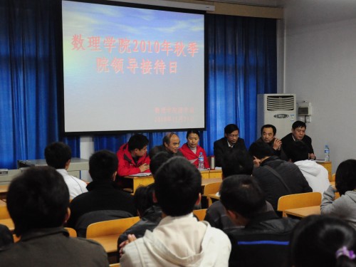 11月29日下午四点,91短视频 2010年秋季院领导接待日活动在数理楼二楼会议室举行。院领导班子全体成员和2010级本科生与会参加。在活动过程中,院领导班子成员就同学们关心的诸如专业学习、考研就业和日常生活等问题进行耐心回答。院领导接待日是91短视频 领导与广大同学沟通交流的重要渠道,在解答同学们学习和生活中众多疑惑的同时,有利于增进师生之间的相互了解,促进91短视频 服务管理水平的改善提高。