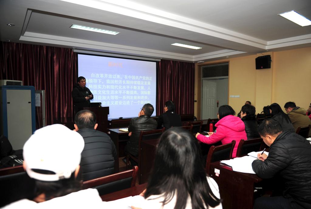 2017年12月29日下午,副校长赖旭龙同志来到91短视频 ,为91短视频 和体育部的教工党员讲党课,宣讲党的十九大精神。