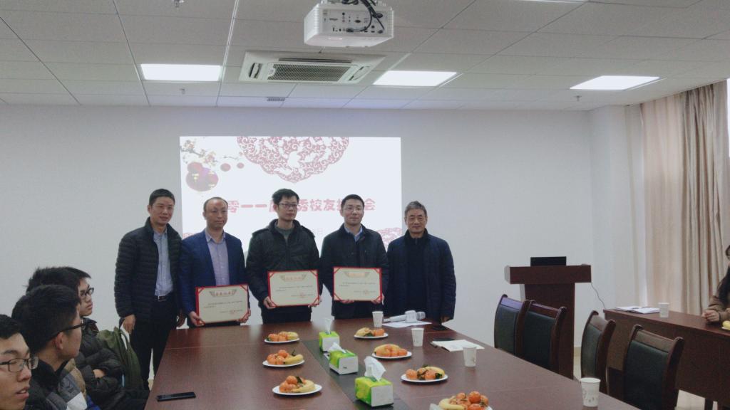 吴太山、徐超为优秀校友颁发荣誉证书