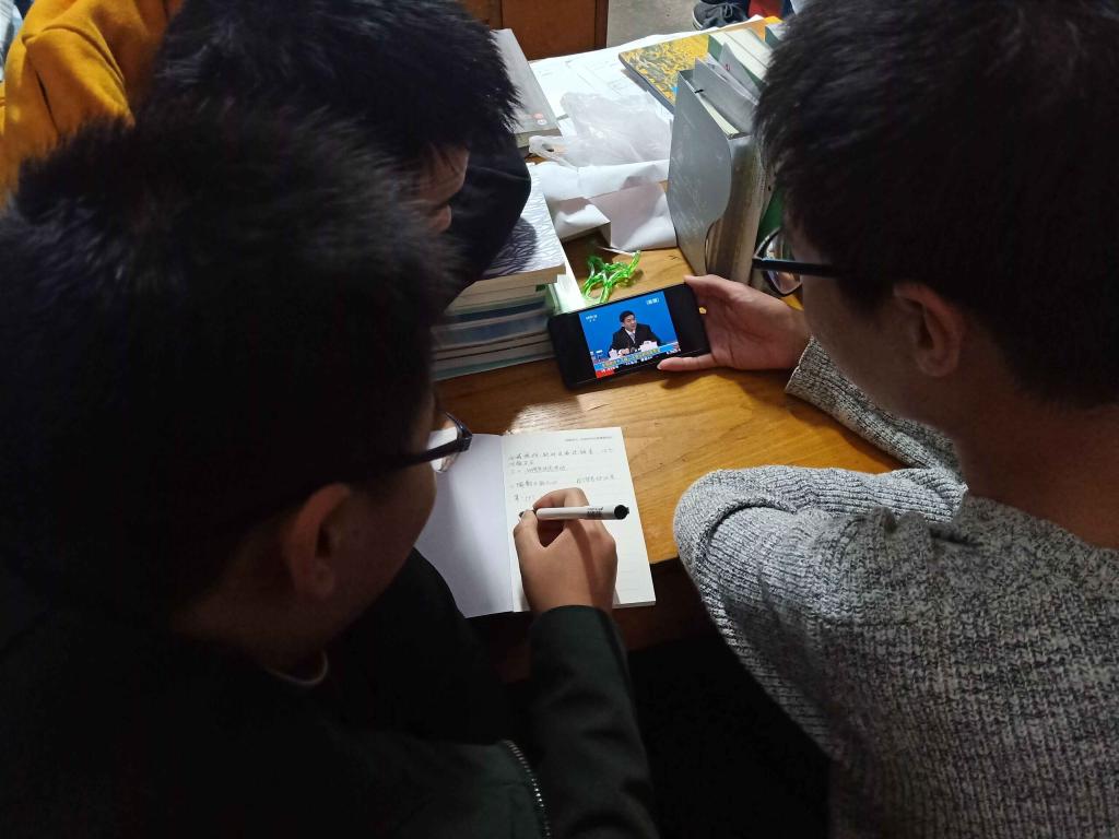 同学们在观看两会