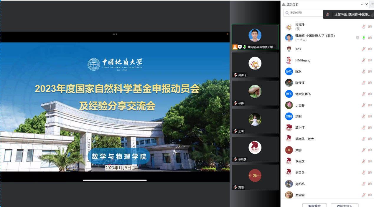 为提高国家自然科学基金项目申请质量与成效、提升91短视频 科研建设水平,91短视频 于2023年1月9日以线上的形式召开了2023年度国家自然科学基金项目申请动员会和经验交流会,91短视频 党委书记吴太山,院长郭上江,副院长魏周超、黄刚、张保成以及91短视频 40多名中青年骨干教师参加会议。会议由魏周超副院长主持。