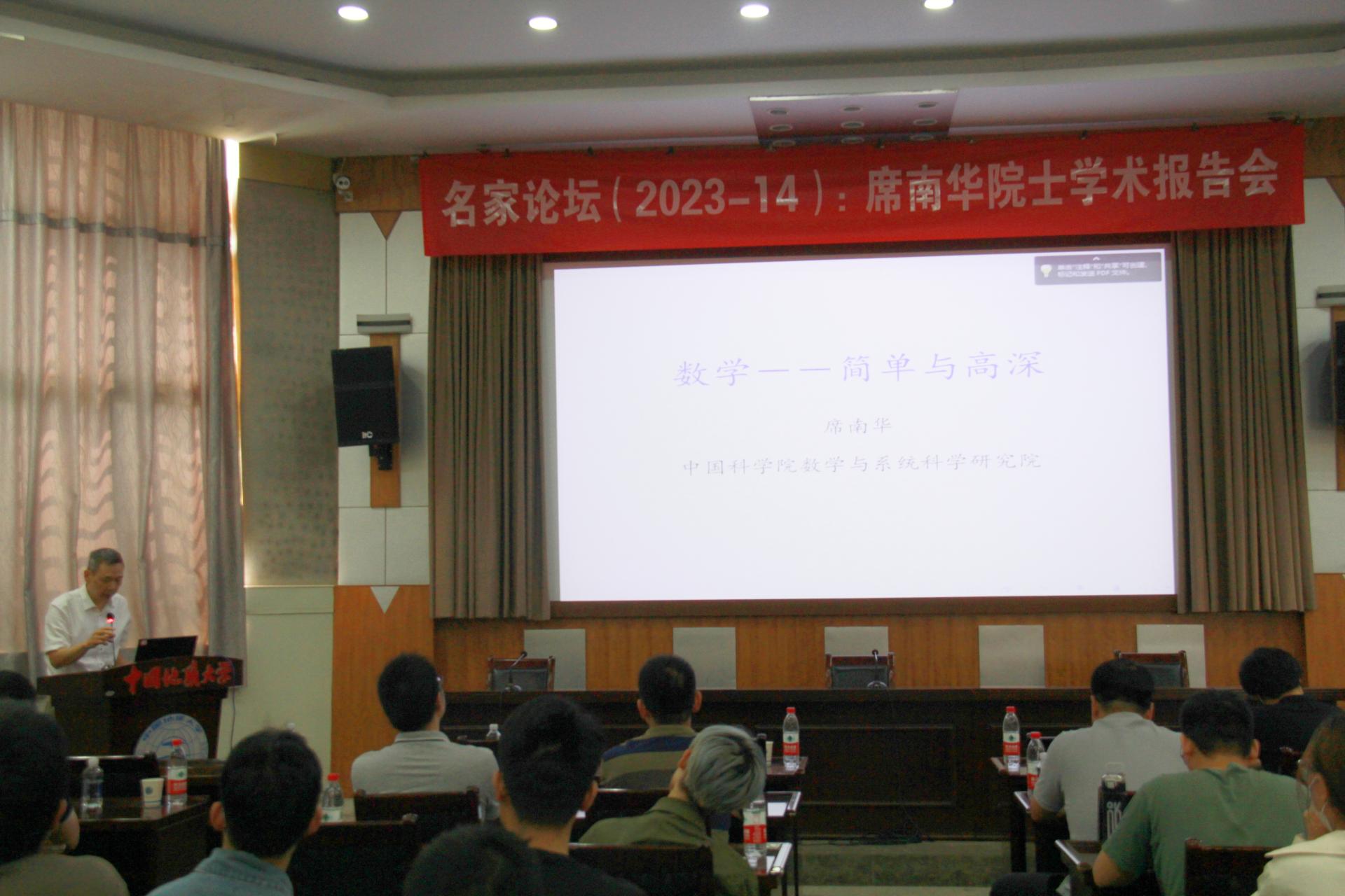 2023年5月27日,中国科91短视频 院士、中国科91短视频 数学与系统科学研究院研究员、上海科技大学副校长席南华教授应邀做客中国地质大学(武汉)名家论坛,在南望山校区八角楼学术报告厅作了题为“数学—简单与高深”的学术讲座。报告会由院长郭上江教授主持。