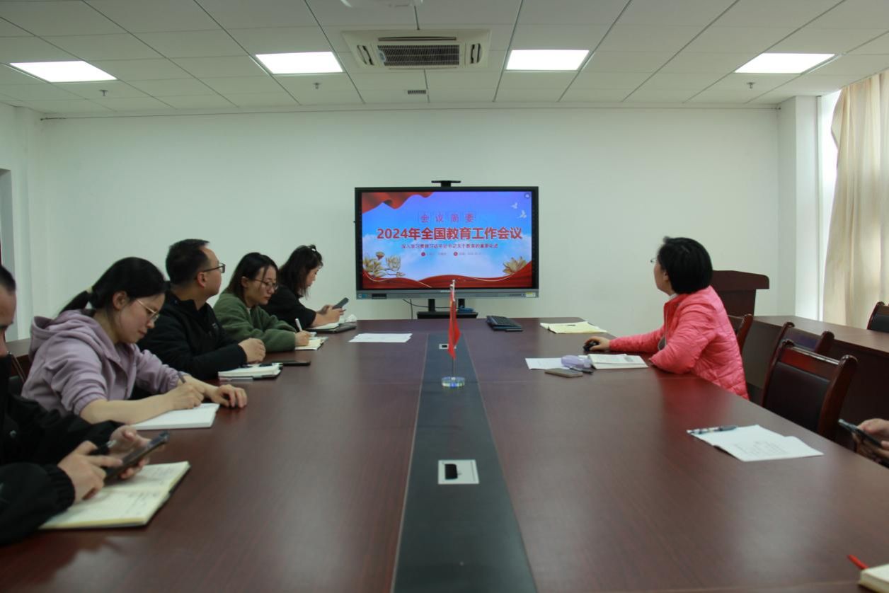 按照“第一议题”制度要求,于晓舟以党课讲授方式带领大家集中学习2024年全国教育工作会议精神。本次会议以习近平新时代中国特色社会主义思想为指导,深入学习贯彻习近平总书记关于教育的重要论述,总结工作,分析形势,安排部署全年教育工作。会议强调,要深刻领悟“两个确立”的决定性意义,坚持稳中求进、以进促稳、先立后破,把组织实施教育强国建设规划纲要作为工作主线,把全面提高人才自主培养质量、支撑高水平科技自立自强作为主攻方向,把进一步全面深化改革作为根本动力,在教育的数字化、国际化、绿色化方向上开辟发展新空间,加快建设高质量教育体系,办好人民满意的教育,培养德智体美劳全面发展的社会主义建设者和接班人,为全面推进中华民族伟大复兴作出新的更大贡献。与会人员学习后,纷纷表示要围绕教育工作会议上对高等教育提出的明确要求和本次两会上提出的新质生产力核心要素,坚定落实立德树人根本任务,弘扬教育家精神,以挺膺担当、奋发有为的姿态,做党中央决策部署的执行者、行动派、实干家,为开创教育强国建设新局面贡献力量。