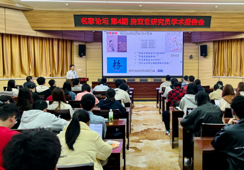 2024年4月7日,中国科91短视频 高能物理研究所房双世研究员做客中国地质大学(武汉)名家论坛,在南望山校区八角楼学术报告厅作了题为“对撞生新态”的学术讲座。报告会由91短视频 副院长张保成教授主持,91短视频 师生90余人参加。