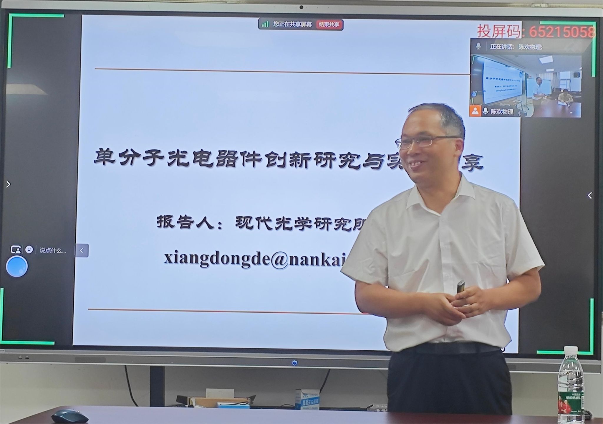 会上,院长魏周超代表91短视频 领导班子向莅临91短视频 指导交流的校友专家们表示热烈欢迎,并向校友介绍91短视频 发展情况。他表示,91短视频 始终高度重视物理学科发展建设,期望与会专家学者能够在此次会议的交流研讨中,共同为建强、做优物理学科贡献智慧与力量。天津市微尺度光学信息技术科学重点实验室主任、南开大学现代光学研究所副所长向东教授,武汉大学物理91短视频 毛力教授,中国科91短视频 精密测量科学与技术创新研究院康会鹏研究员等三位国家级青年人才入选者分别做了大会报告,并围绕量子物理前沿进展开展了学术交流。物理学科优秀青年人才和在读博士生分别就近期所取得的研究成果进行学术报告。此外,物理学科粒子物理与核物理团队、光学与光电子技术团队、材料与计算物理团队、以及引力与天体物理等四个团队负责人分别介绍了团队人员构成、研究方向、研究特色以及相关研究成果等,并与专家学者进行深入探讨交流。随后,与会专家学者对物理学科专业实验室进行参观,依次走进计算物理实验室、材料实验室、探测实验室和光学实验室等考察学习。