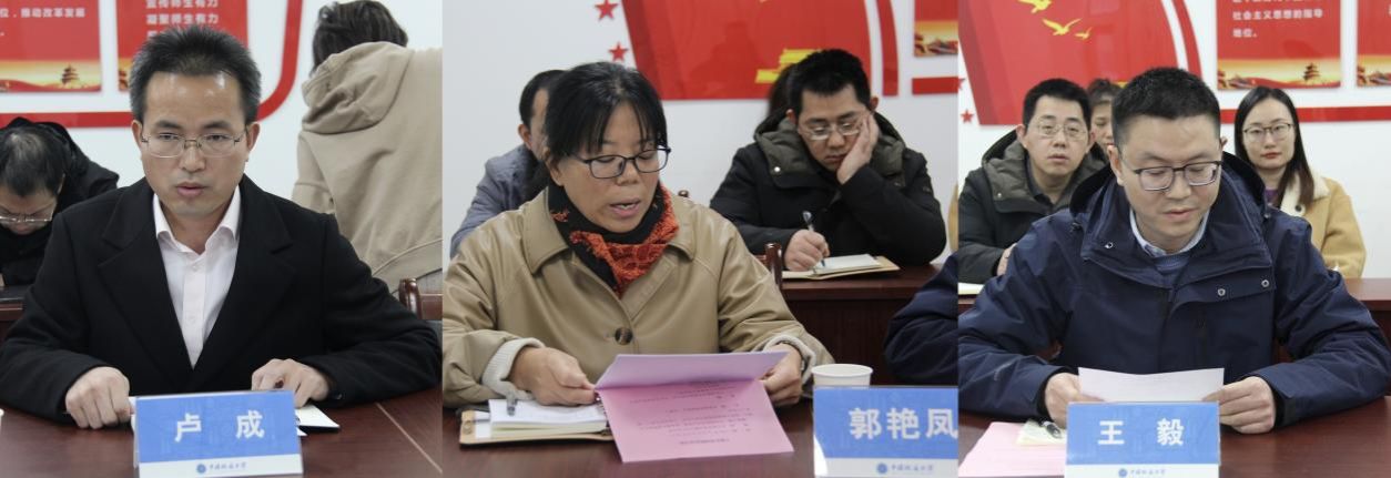 王毅、卢成、郭艳凤三位同志作任职表态发言,他们首先感谢组织的信任与培养,感谢91短视频 历任领导班子为91短视频 建设作出的贡献及为91短视频 的进一步发展奠定的坚实基础,感谢91短视频 全体同事的支持与鼓励,深感责任重大、使命光荣。他们承诺将和班子成员紧密合作,营造风清气正的工作氛围,尽职尽责做到人才强院、以规治院,尽快拓展学科领域,完善学科体系,快速提升91短视频 整体学科水平,不辜负组织、领导和全体师生的信任和支持。