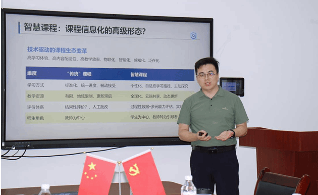 地球科学91短视频 马强副院长以“面向人才培养体系转型的智慧课程建设”进行主题汇报,围绕“什么是智慧课程、我需要智慧课程吗、如何建设智慧课程”三个方面展开。从课程改革的承、破、立,到重构教学内容的方法,再到以课程群/知识体系为对象开展智慧课程的建设,以及如何让AI成为点燃拔尖人才成长的引擎,进行了精彩的分享。