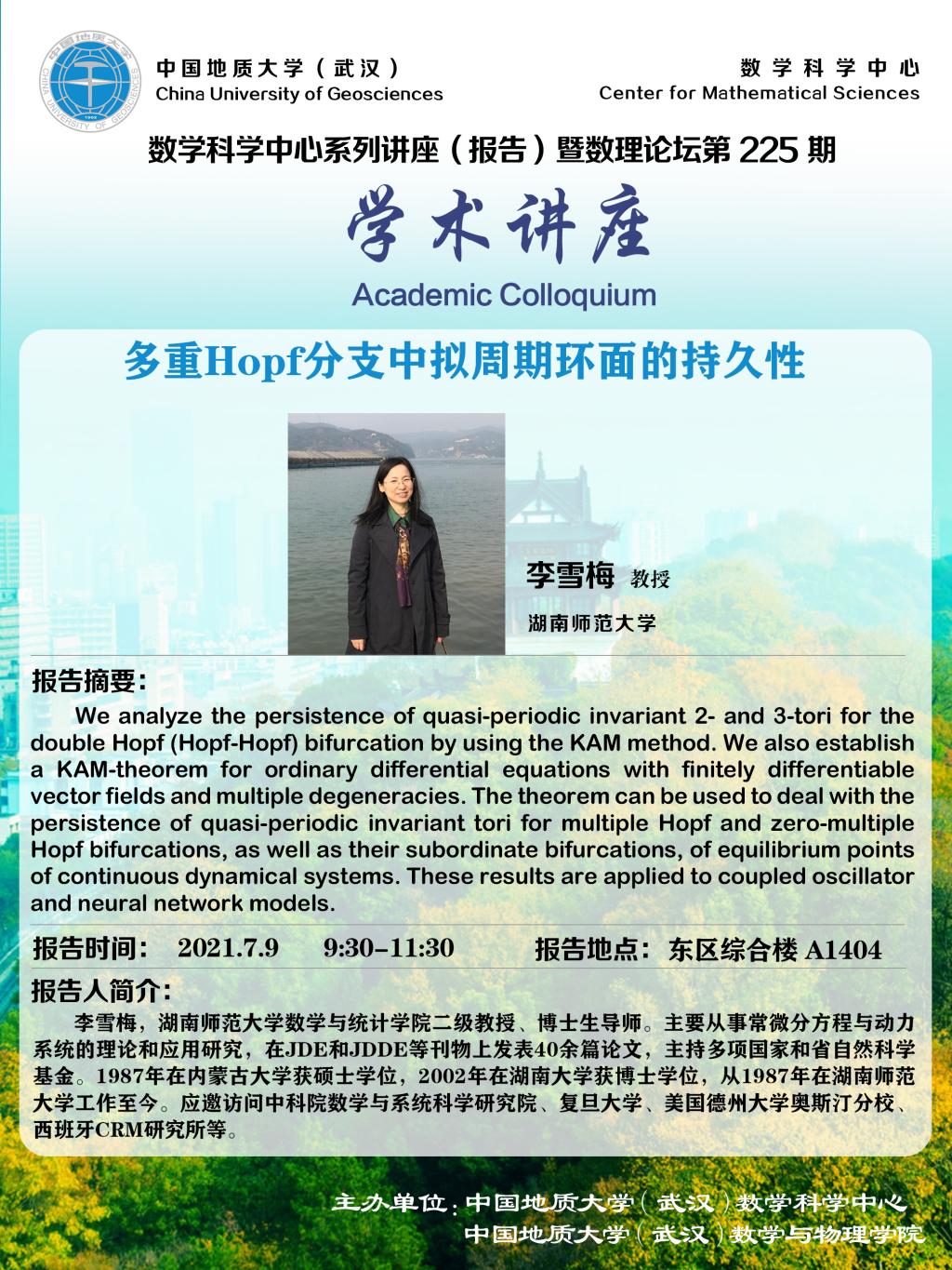 "数理论坛"第225期暨数学科学中心系列讲座(报告):多重Hopf分支中拟周期环面的持久性