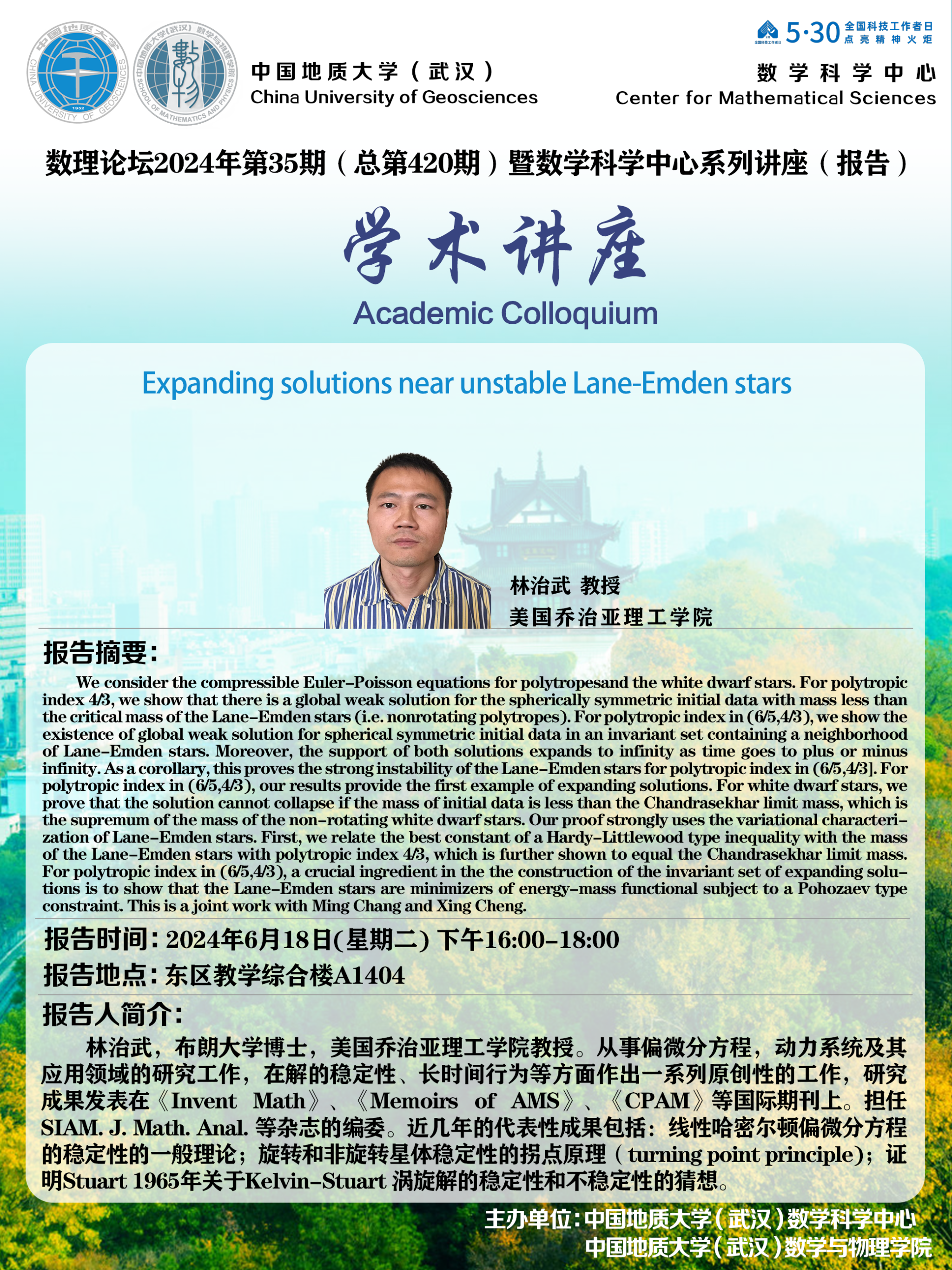 2024年6月18日林治武教授学术讲座:Expanding solutions near unstable Lane-Emden stars