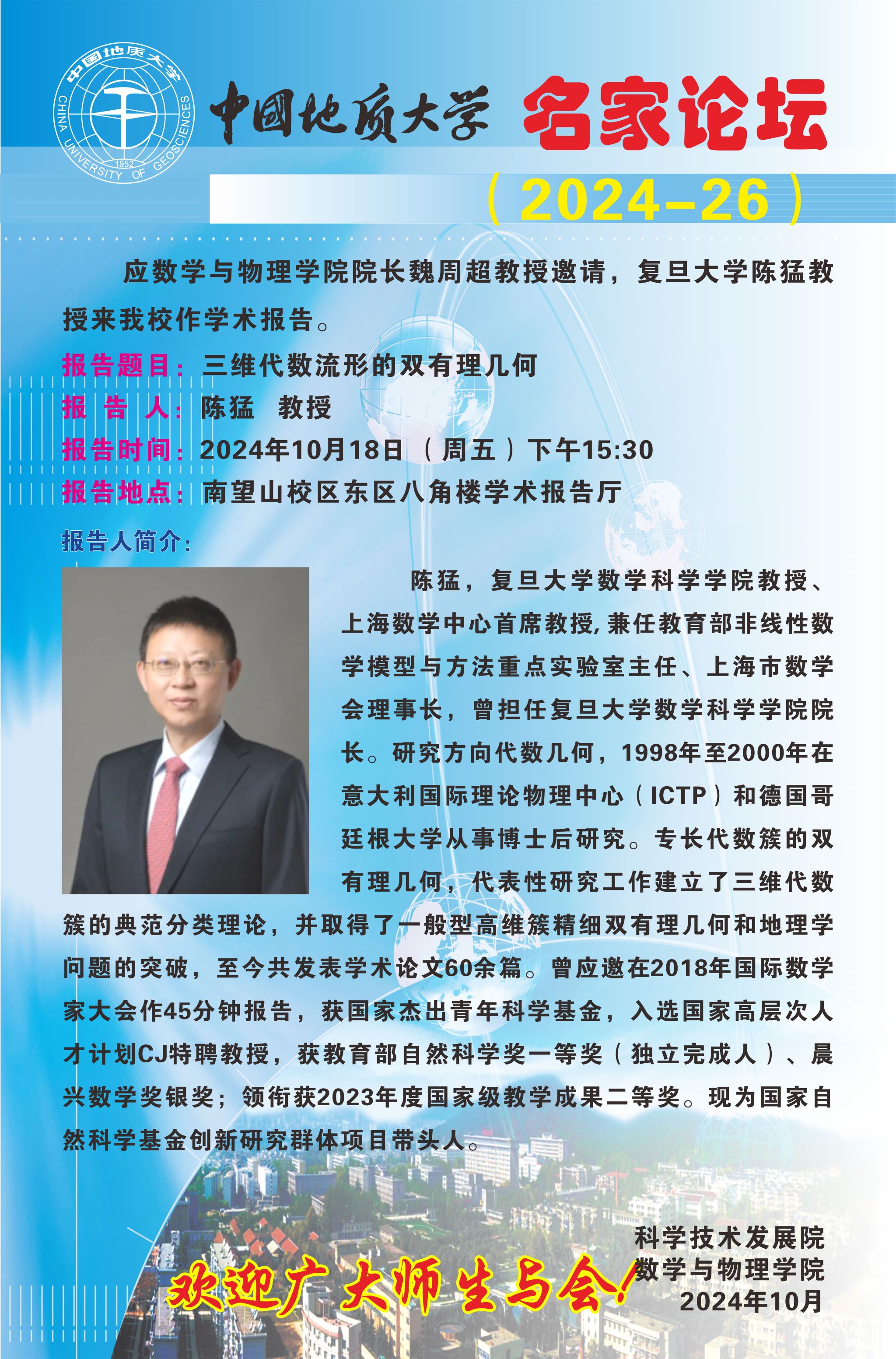 2024年10月18日陈猛教授学术讲座:三维代数流形的双有理几何