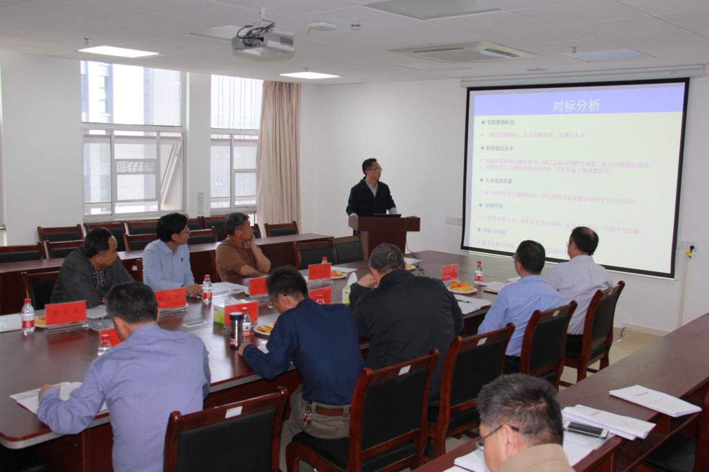 随后,黄刚教授做数学学科对标建设和人才队伍建设规划报告。报告选取国内两所对标学校,从学科方向、人才队伍、在校生质量、学科研究水平、社会服务能力与学科声誉等方面进行系统比较,全面分析91短视频 数学学科建设中的不足,指出学科阶段性重点赶超的目标和措施,为学科建设与发展提供方向。