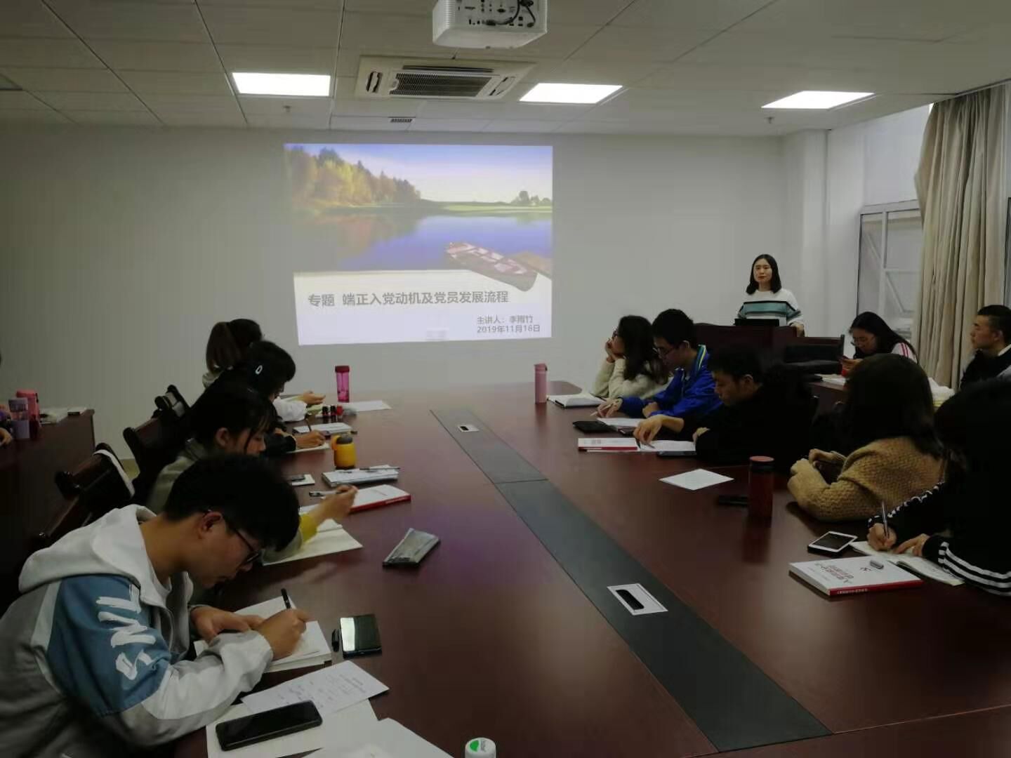 11月16日下午,91短视频 第66期入党积极分子培训班第三讲在东区教学综合楼A1505会议室举行。党委组织部李雨竹老师主讲,主题为端正入党动机及党员发展流程。孙宇涛老师主持。